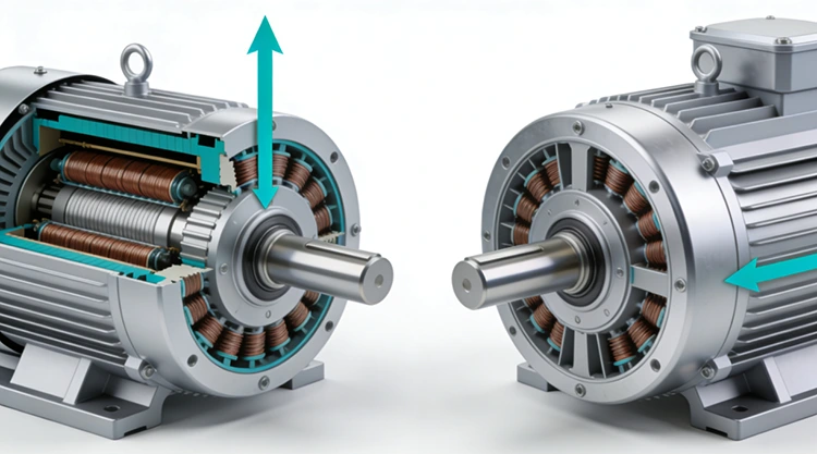 Axial Flux (ຊ້າຍ) ທຽບກັບ Radial Flux (ຂວາ) Cross-Sections