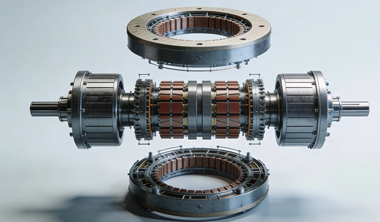 Axial Flux / Disc Motors: ປັບຕົວກັບໂຄງສ້າງ back-yoke ຄູ່ສໍາລັບວົງຈອນແມ່ເຫຼັກຕາມແກນ, ມີລັກສະນະຮາບພຽງສໍາລັບໂມດູນຂັບຂາແລະແອວໃນຫຸ່ນຍົນ humanoid.